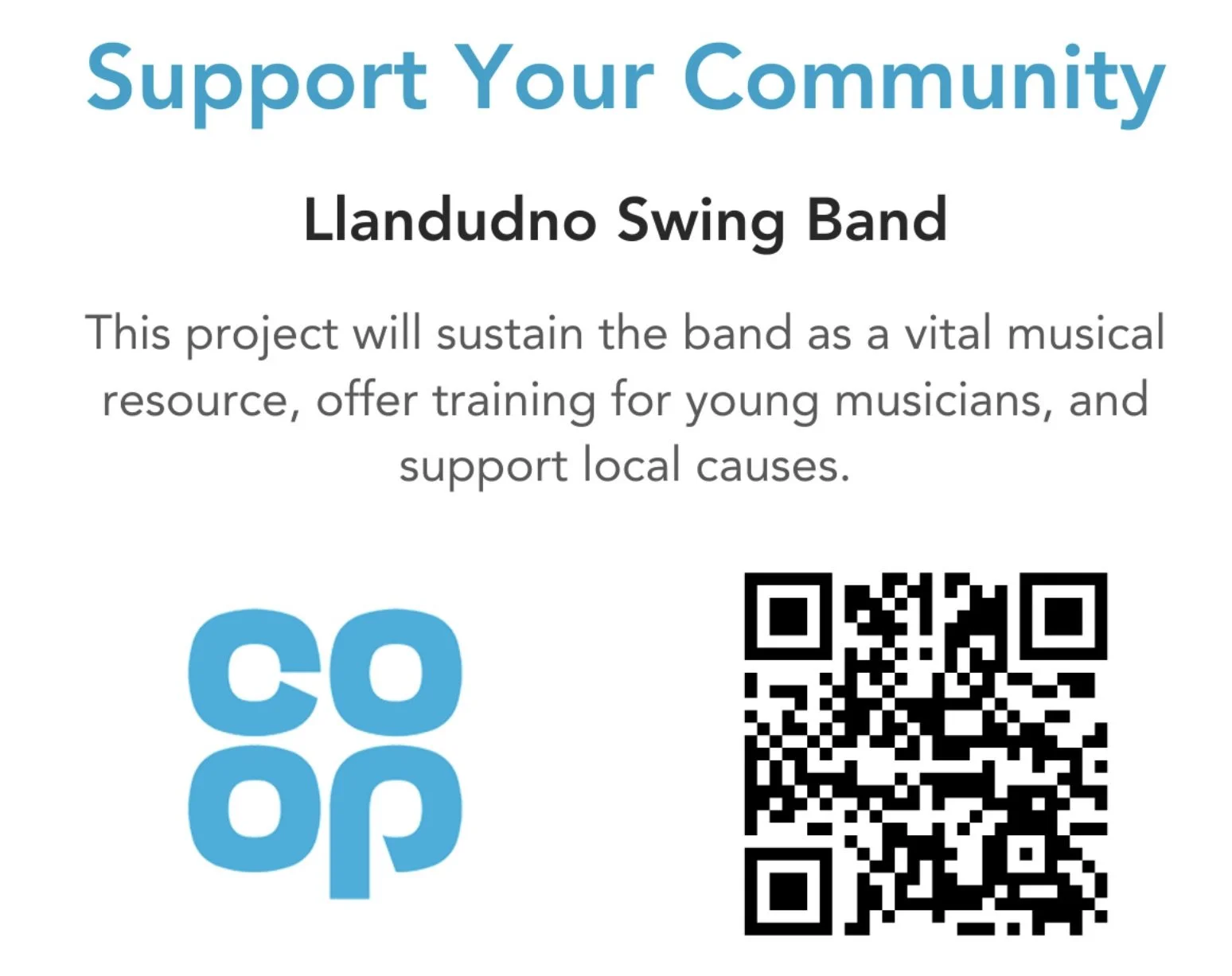 The Llandudno Swing Band has been chosen for the second year running to be a local cause promoted by the Co-op!